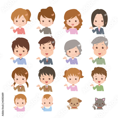 educated, locate, illustration, sweet, face, expression, variation, plural, smile, girl, woman, boy, man, children, baby, babushka, grandfather, grandparent, grandfather, pet, dog, cat, youth, aged, family, home, student, father, mother, father, mother, sister, cute
