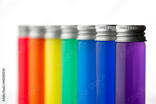 rainbow, rainbow, bottle, colourful, red, orange, green, indigo, blue, purple, nature, macro, indoor, light, white, white background, pretty, vivid