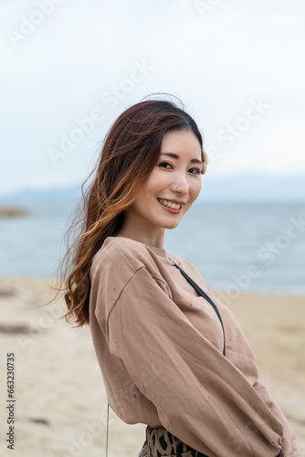 woman, sea, beach, nature, sky, vacation, travel, lifestyle, leisure, vacation, sand, outdoors, beauty, water, person, view, relaxation, fashion, fun, standing, 1, japanese, happiness, brunette, model, lady, look, face, smiling, hair, couple, summer, relax, quay, blue, enjoyment