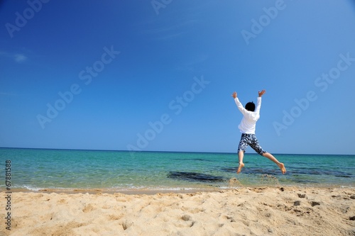 pretty, outdoors, tropical, paradise, healing, beach, resort, resort, relaxation, vacation, vacation, health, healthful, enjoyment, summer, summer getaway, island, happy, travel, japanese, asian, korean, chinese, light, view, paradise, sea, healing, midsummer, sky, tour tourism, blue skies, landscape, white, nature, man, jump