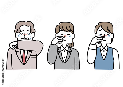 cry, sad, tear, crying, businessman, vector, business, people, employee, salaried employee, icon, illustration, japanese, man, suit, woman, work, waist up, material, office, management, young, work, flat, teacher, lecturer, occupation