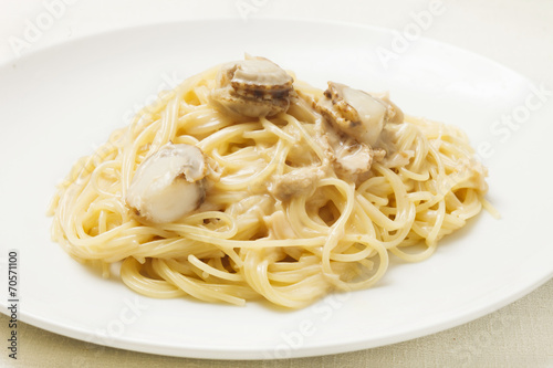 pasta, spaghetti, scallop