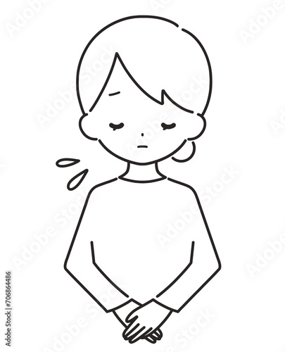 apology, bow, bow, woman, people, please, sorry, sweat, sorry, steer, monochrome, monotone, black, refuse, illustration, pretty, sweet, person, woman, japanese, waist up, alone, front, common, reception, expression, etiquette