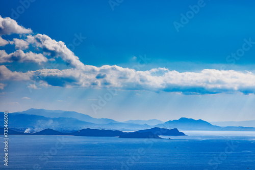 sea, blue, emerald green, island, mountain, nature, beach, break, tour tourism, tourist attraction, rest, landscape, view, asia, japan, kyushu, sunny, blue skies, sky, outside, boat