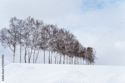 hokkaido, hill, snow, winter, snow, wood, nature, populus, plant, nature, landscape, sky, earth, japan, white, white, view, open air, copy space, blank space, background, advertisement, background, bg, image, material, tour tourism, tourist attraction, travel, journey, showplace