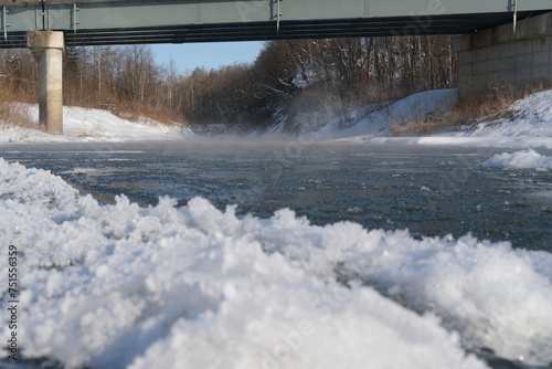 stream, ice, snow, view, winter