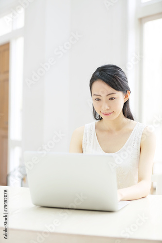 personal computer, woman, young, girl, notebook, net, cyberspace, mail, people, smile, smile, sweet, pretty, pretty, clean, alone, shopping, seek, portrait, portrait, qualification, e-learning, white, indoor, indoor, room, table, table, chair, seated, waist up, summer, spring, homemaker, adult, student, spend, look, check, japanese, study, light, refreshing, lifestyle