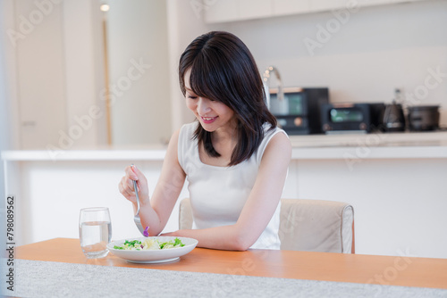 family, family, house, dining, meal, rice, alimentation, balance, health, salad, vegetable, vegetarian, diet, detox, stomach, dish, dish, fork, smile, delicious, cosmetic, live, lettuce, dish, table, relax, satisfaction, weight loss, style, calorie, kitchen, young, home, woman, asian, japanese, chinese, korean, copy space