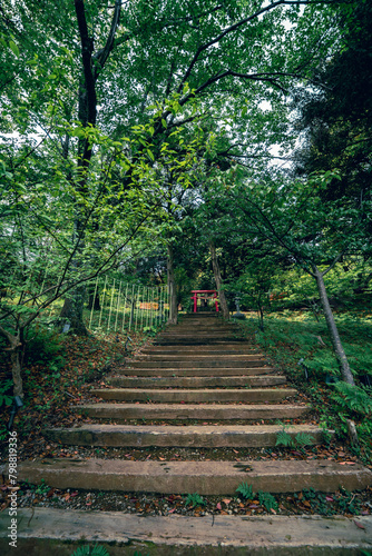shrine, japan, april, spring, daytime, outside, morning, open air, religion, torii, red, nature, landscape, travel, copy space, mountain, holiday, vacation