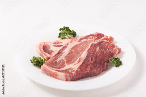 shoulder, pig, meat, pork, sirloin, dish, foodstuff, chunk, food, live, image, material, white background