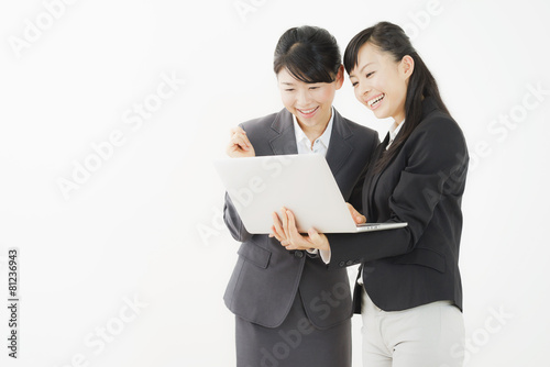 business, personal computer, woman, two people, two people, work, work, girl, woman, colleague, secondary, boss, team, group, plural, people, waist up, notebook, white, white background, young, 30s, smile, smile, sweet, pretty, pretty, clean, suit, japanese, asian, career woman, planning, proposal, mail, net, cyberspace, examine, look, possess, consultation, meeting, speaking