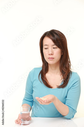 depression, neurosis, depression, trouble, solitude, medicine, mental health, medicine, addiction, patient, insanity, mental disease, obstacle, woman, homemaker, middle-aged, japanese, asian, alone, white background, black hair, woman, 30s