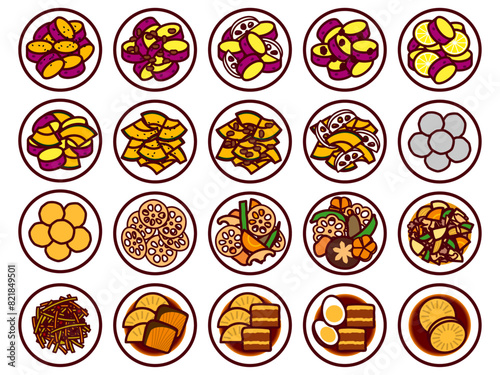 food, dish, food, meal, food, vegetable, sweet potato, raisin, lemon, pumpkin, taro, green beans, carrot, burdock, chicken, radish, egg