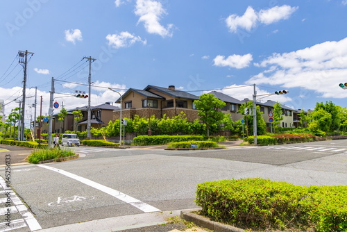 landscape, residential area, underground, residential area, blue skies, city landscape, summer, sunny, cloud, property, building, house, suburban, city, home, japan, town, transportation, sky, house, route