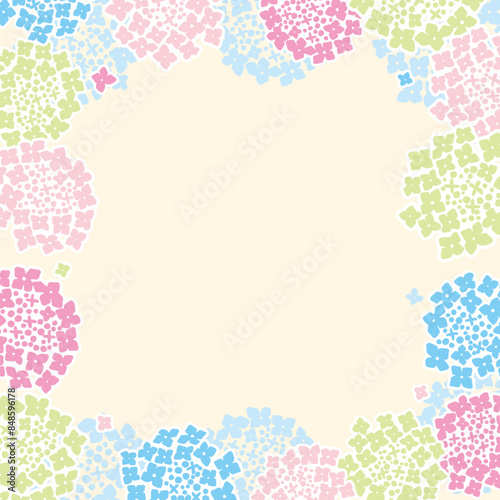 アジサイ 花 パステルカラー カラフル 初夏 梅雨 フレーム バナー
