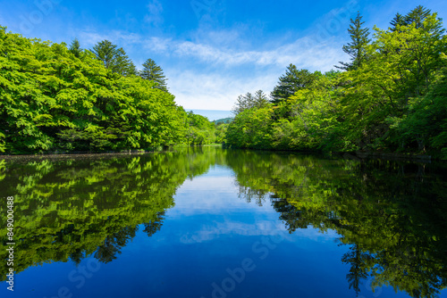 mere, lake, nature, landscape, japan, reflex, clean, lovely, blue skies, sunny, wood, park, forest, sky, green, blue, cloud, verdure
