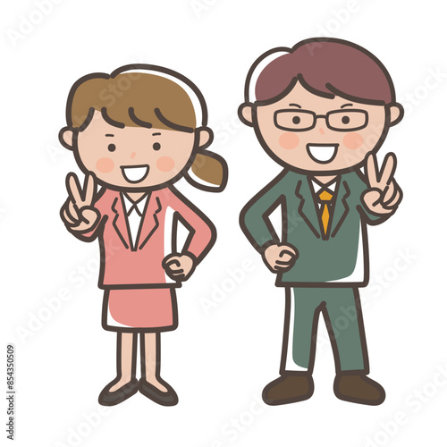 pease, suit, woman, businessman, employee, man, smile, ol, illustration, sweet, glasses, smile, salaried employee, career woman, couple, smile, fun, rejoice, lucky, victory, success, joyful, young, business, pop, woman, man, light, newcomer, skirt, recruit, pose, gesture, colleague, office, people, corporation, material, vector