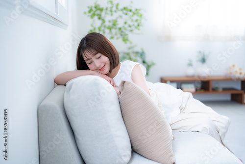 woman, couch, home, vacation, holiday, house, home, house, residence, relax, vacation, carefree, fatigue, fatigue, drowsy, japanese, people, room, stress, indoor, homemaker, refresh, relaxation, rest, relax, copy space, plant, couch, light, refreshing, window, cushion, lifestyle