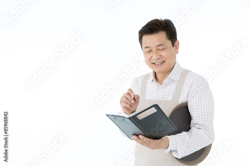 man, eatery, coffee, pub, middle-aged, byte, japanese, eatery, sideline, people, 50's, apron, smile, order, order, chinese, korean, taiwanese, asian, staff, hall