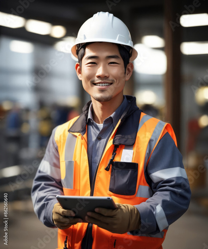 working man, man, construction site, helmet, labor, people, site, waist up, construction, work, factory, work, working man, japanese, warehouse, logistic, industry, industry, business, workwear, architecture, occupation, working, director, engineer, illustration, 30s, smile, tablet, personal computer, call