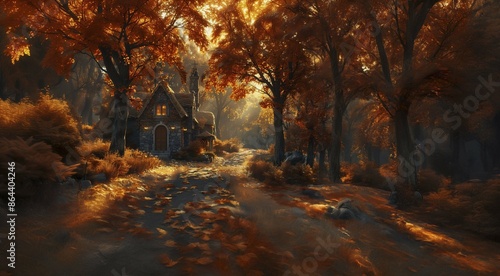 fall, illustration, street, forest, beautiful, background, deciduous, foliage, landscape, nature, leaf, landscape, park, season, route, outdoors, colourful, natural, red, countryside
