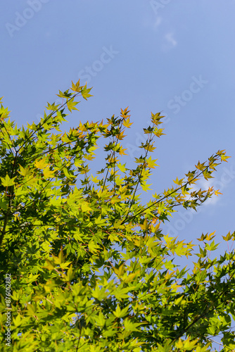 wood, leaf, green, sky, blue skies, rainy season, july, summer, sunny, copy space, japan, lovely