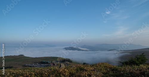 fog, cloud, season, sky, green, refreshing, mountain, plateau, way, lovely, clean, landscape, view, route, image, copy space, material, background, nature, sunny, japan, green, hill, hike, fresh, refresh, meadow, tourist attraction, outdoors, open air, showplace, travel, fog, mystic, morning
