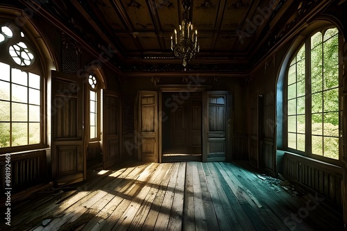 おとぎ話の森にある豪華な放棄された中世の邸宅