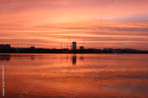 해질녘 낙동강과 공사현장의 자연스러운 조화