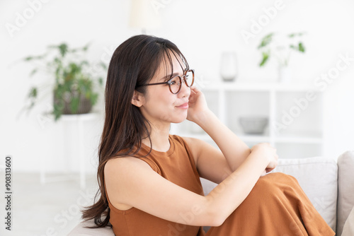 woman, smile, happy, relax, break, cosmetic, beauty, couch, glasses, light, casual, girl, woman, portrait, lifestyle, beauty, room, japanese, young, people, lively, sweet, pretty, asian, image, fun, smile, smile, happy, 30s