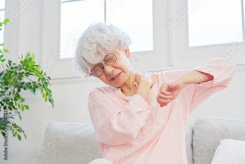 woman, aged, aged, shoulder, pain, living room, 60's, touch, ache, aged, fatigue, home, room, fatigue, elder, house, painful, grandmother, overwork, indoor, indoor, japanese, asian