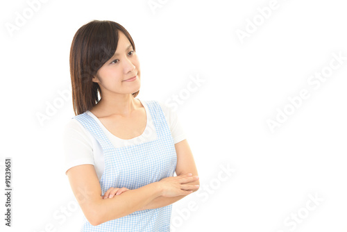 woman, people, homemaker, housekeeping, family, home, mother, people, woman, mother, young, adult, sweet, pretty, smile, smile, smile, lively, happy, happiness, love, love, meal, dish, model, beauty, girl, light, caring, waitress, apron, housekeeper, help, welfare, helper, clerk, work, expression, alone, japanese, asian, waist up, copy space, white background