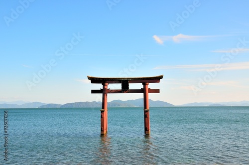 lake, landscape, japan, nature, blue skies, sunny, lakeshore, lakeshore, water surface, water, cloud, tour tourism, travel, refreshing, torii, showplace, shinto, vermilion, history