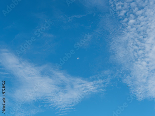 moon, celestial bodies, satellite, sky, blue skies, sunny, midsummer, summer, morning, morning, firmament, cloud, landscape, background, open air, nature, weather