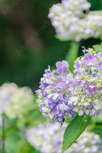hydrangea, flower, rainy season, plant, june, nature, leaf, flower petals, green, landscape, summer, full bloom, green, open air, copy space, rain, closeup, purple, pretty, japan, background, lovely, purple, bloom, vivid, light, up, clean