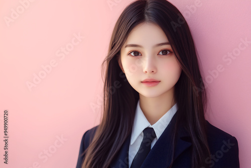 girl, beauty, sweet, model, portrait, face, long hair, uniform, natural, japanese, straight hair, asian, cleanliness, closeup, up, black hair, youth, student, student, lovely, coiffure, glamour, smile, woman, girl, studio, beauty, young, look, waist up, indoor, indoor, copy space, art, graphic, design, image, illustration, illustration, material