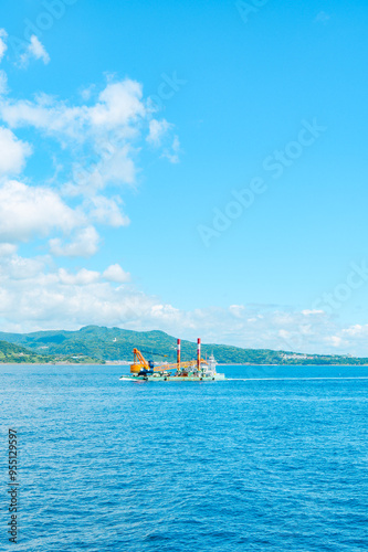 cruise, nautical, sea, view, sea, sky, landscape, blue, panorama, blue skies, horizon, summer, sea, firmament, lovely, clean, nature, weather, weather, weather, background, material, copy space, japan, textured, image, background, boat, brine, water surface, ferry, cloud, land, mountain, island