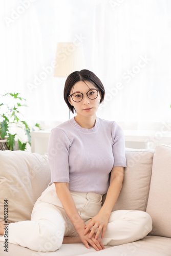 woman, smile, happy, relax, break, cosmetic, beauty, couch, glasses, light, casual, girl, woman, portrait, lifestyle, beauty, window, room, japanese, young, people, lively, sweet, pretty, asian, image, fun, smile, smile, happy, 30s