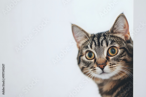 隙間から顔を覗かせる猫のクローズアップ