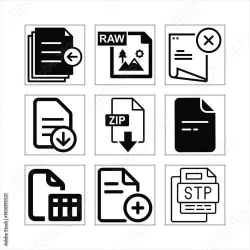 File Type Vector Icons For User Interface And Website Design Elements In Black And White