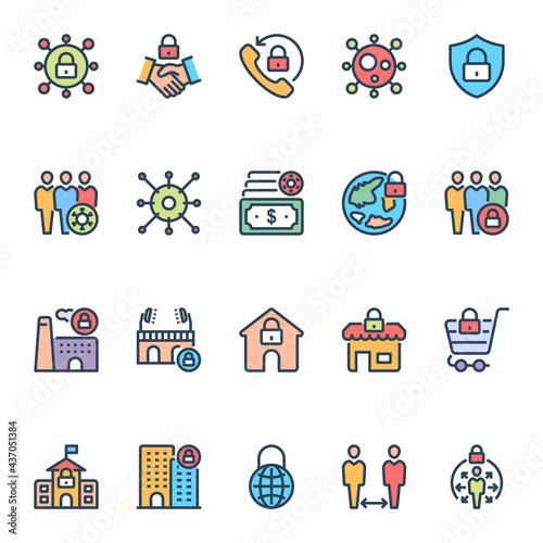 Filled outline icons for lockdown.