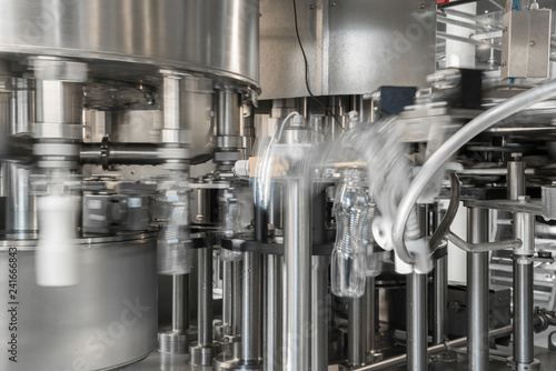bottle, filling, milk, factory, equipment, machine, industry, production, conveyer, circle, technology, line, manufacturing, industrial, drink, plant, dairy, container, bottling, beverage, work, storage, plastic, automation, process, business, automated, liquid, product, cardboard box, yogurt, row, processing, farm, tube, belt, machinery, group, clean, pipe, system, closeup, modern, motion, cream, sour cream, blurred, move