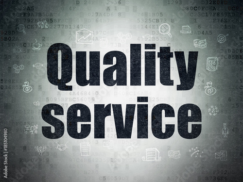 Finance concept: Painted black text Quality Service on Digital Data Paper background with Hand Drawn Business Icons