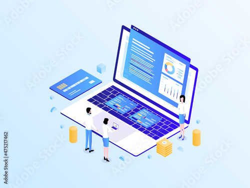 Finance Presentation Isometric Light Gradient Illustration. Suitable for Mobile App, Website, Banner, Diagrams, Infographics, and Other Graphic Assets.