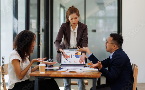 Financial Business analyze the graph of the company's performance to create profits and growth, Market research reports and income statistics, Financial and Accounting meeting concept.