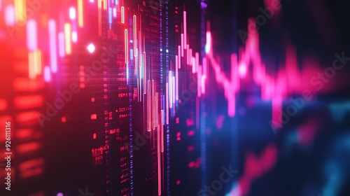 stock exchange, trading, investment, finance, business, economy, digital, technology, abstract, futuristic, neon, glow, vibrant, colourful, dynamic, volatility, risk, growth, decayed, fluctuation, chart, graph, line, red, blue, closeup, screen, digital artwork, background, abstract art, macro