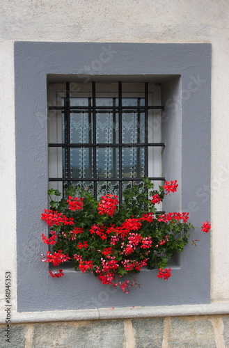 finestra con sbarre e fiori