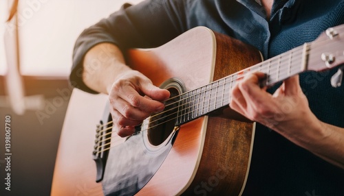 Fingers playing a guitar strings