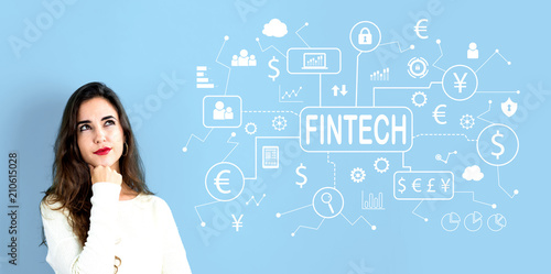 financial, technology, business, information, money, cyberspace, innovation, digital, investment, concept, banking, bank, tech, market, accounting, flowchart, diagram, connection, networking, cyber, icon, line, woman, businesswoman, thinking, thoughtful, pensive, idea, thought, female, lady, people, person, face, caucasian, blue, background