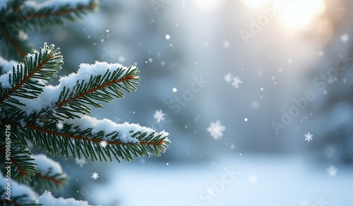 fir branches adorn serene winter landscape covered soft delicate snowflakes